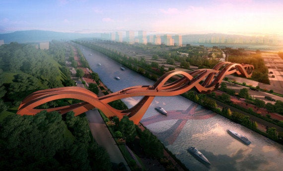 The impressive wavy design, which will function as a pedestrian walkway over the Dragon King Harbor in China, is the work of NEXT Architects. The design of the bridge includes three individual spiral paths integrated into the picturesque Changsha landscape.